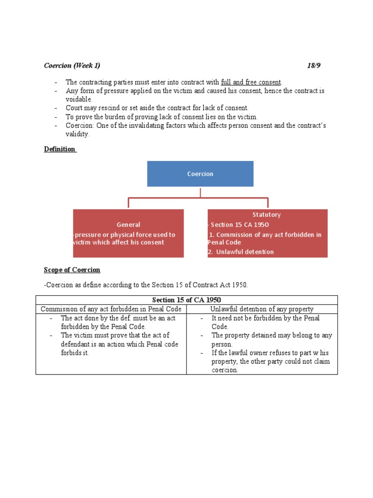 -Coercion as define according to the Section 15 of Contract Act 1950.
