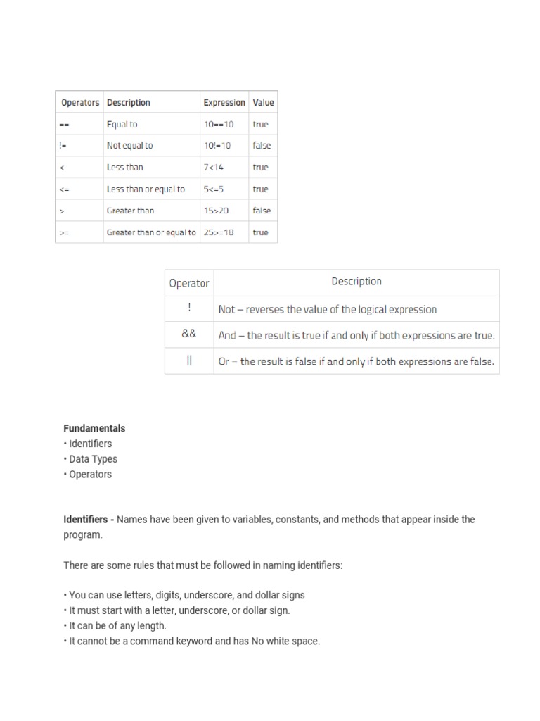 Identifiers - Names have been given to variables, constants, and methods that appear inside the