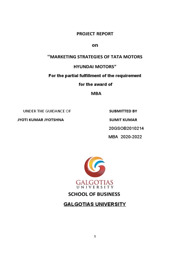 I, SUMIT KUMAR, student of MBA School of Business, Galgotias University, Greater Noida,