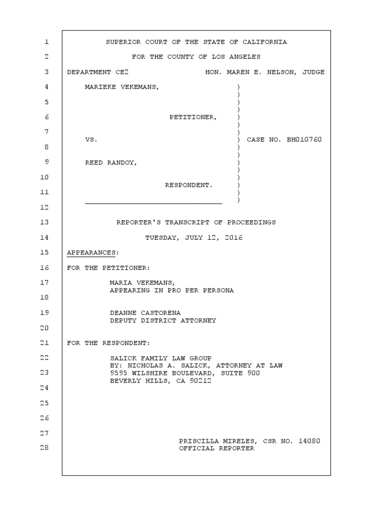 18 THE COURT: MARIEKE VEKEMANS AND REED RANDOY. THIS