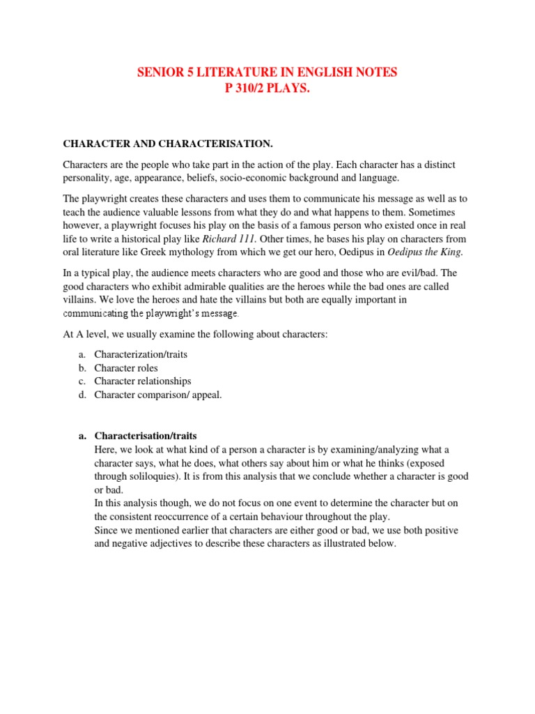 SENIOR 5 LITERATURE IN ENGLISH NOTES