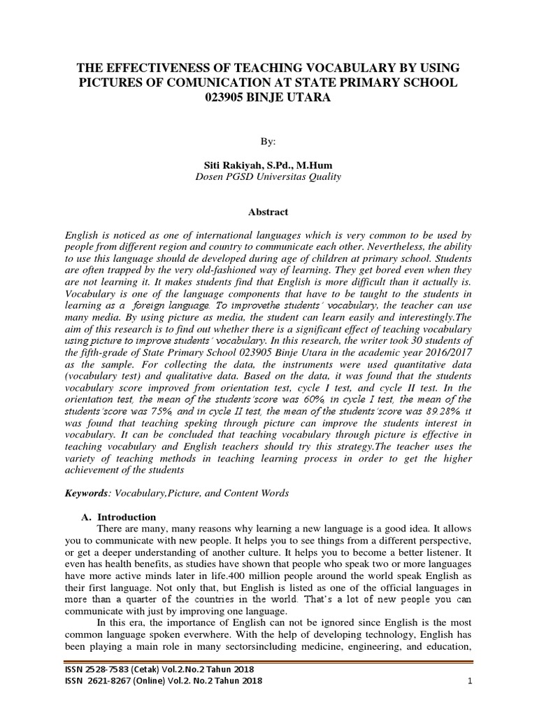 THE EFFECTIVENESS OF TEACHING VOCABULARY BY USING