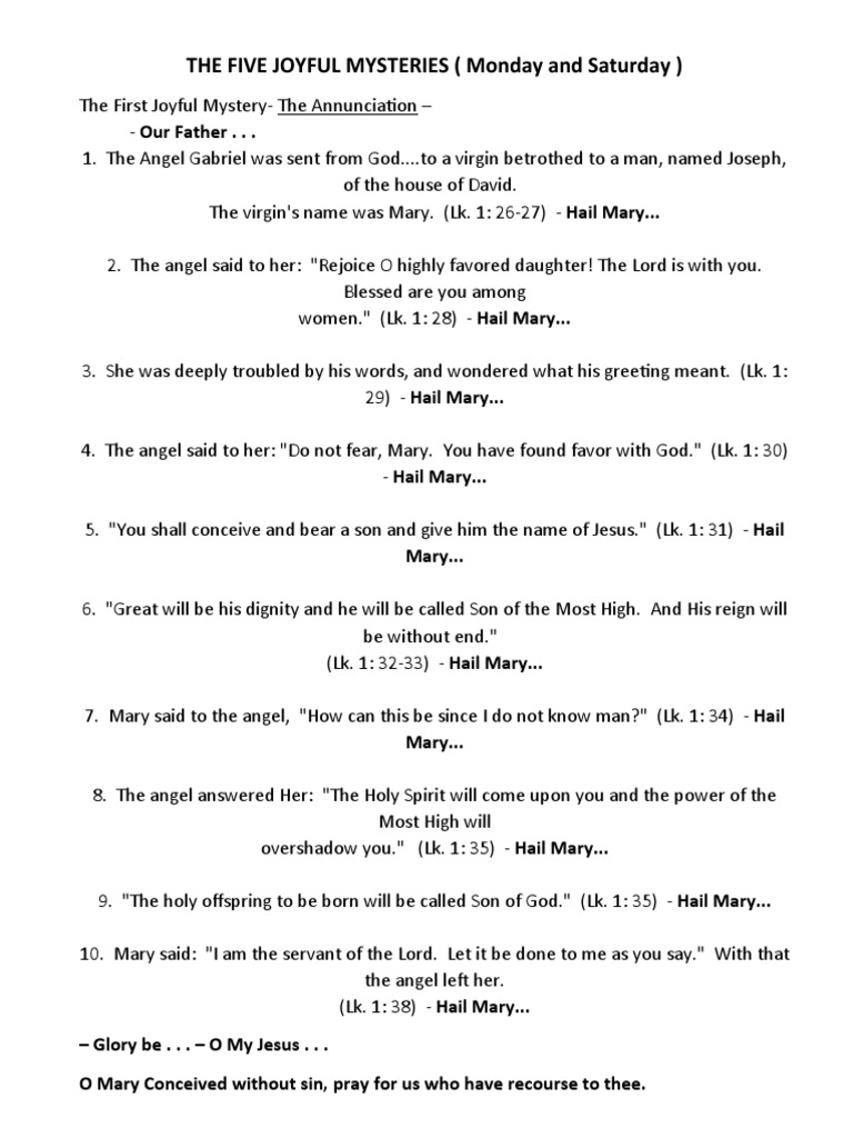THE FIVE JOYFUL MYSTERIES ( Monday and Saturday )