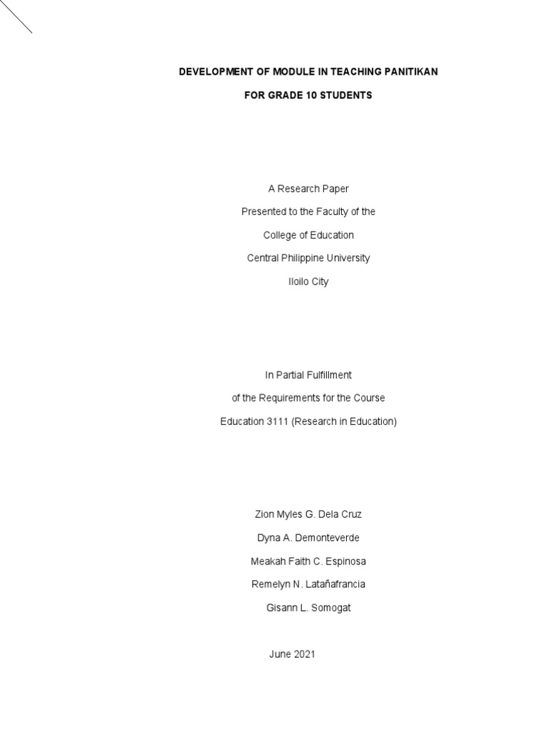 The study aimed to develop a module in Panitikan for Grade 10 students for a public