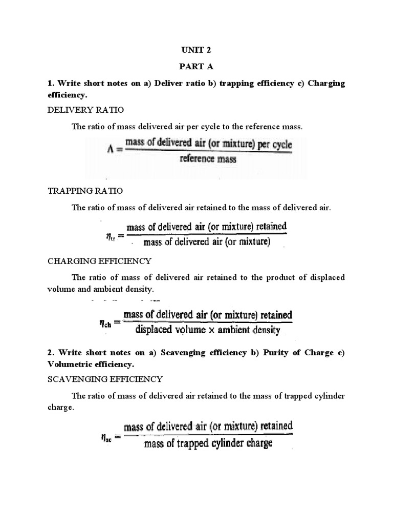 2. Write short notes on a) Scavenging efficiency b) Purity of Charge c)