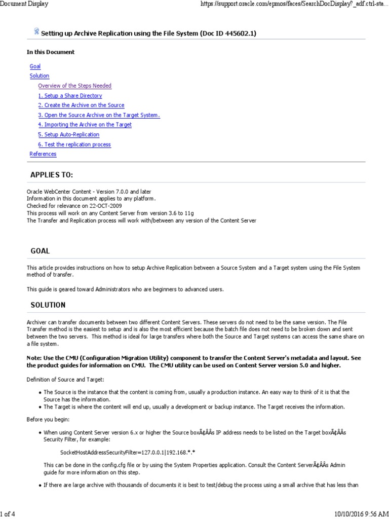 Archiver can transfer documents between two different Content Servers. These servers do not need to be the same version. The File