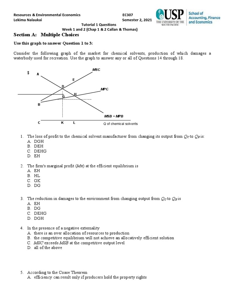1. The loss of profit to the chemical solvent manufacturer from changing its output from QC to QE is: