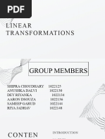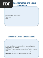 A linear transformation is a mathematical function that maps vectors to vectors while preserving the operations of vector addition and scalar multiplication. This concept is fundamental in linear algebra and is used in various applications across mathematics and engineering. The document provides a detailed exploration of linear transformations, including their properties and examples.