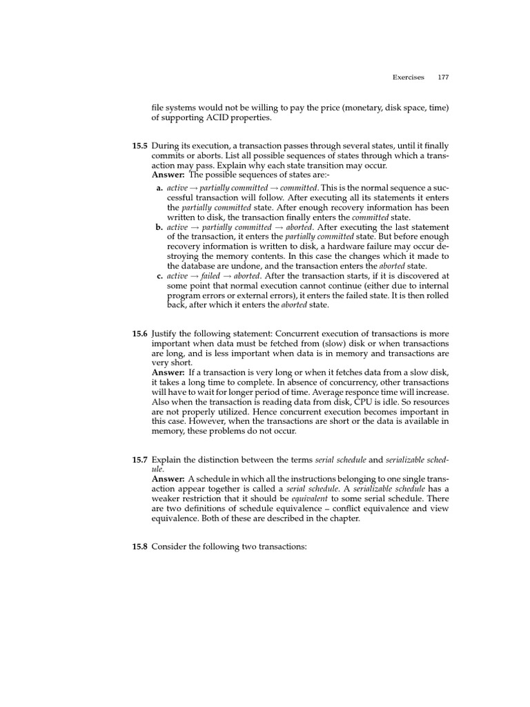 15.7 Explain the distinction between the terms serial schedule and serializable sched-
