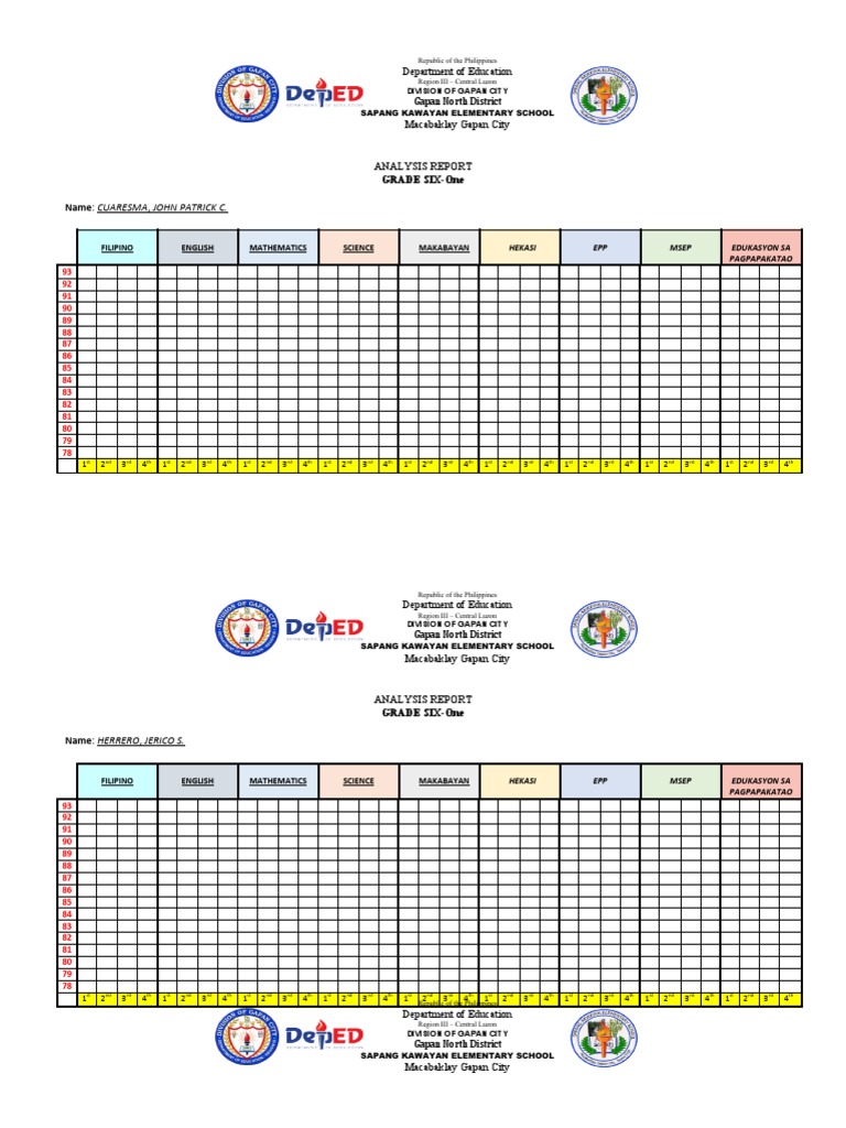 FILIPINO ENGLISH MATHEMATICS SCIENCE MAKABAYAN HEKASI EPP MSEP EDUKASYON SA