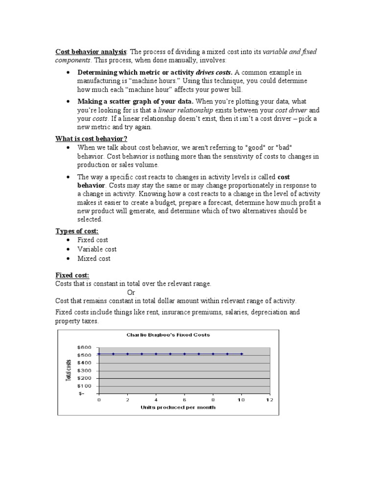 • When we talk about cost behavior, we aren't referring to "good" or "bad"