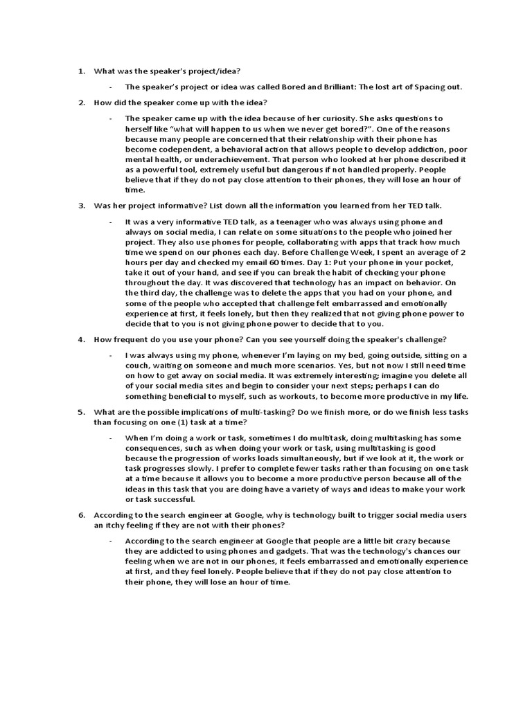 - It was a very informative TED talk, as a teenager who was always using phone and