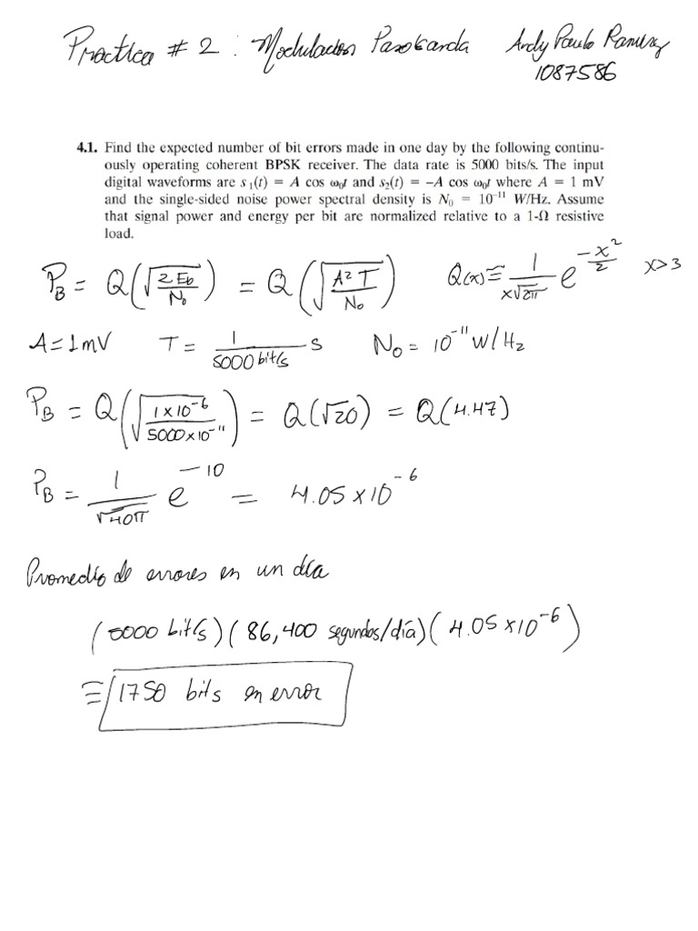carrier amplitude, A, is 1 mV, and the two-sided AWGN spectral density, Ny/2, is