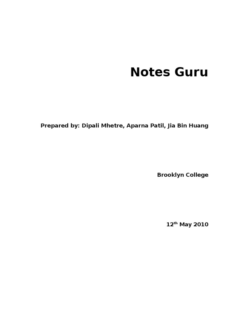 Notes Guru: Prepared By: Dipali Mhetre, Aparna Patil, Jia Bin Huang
