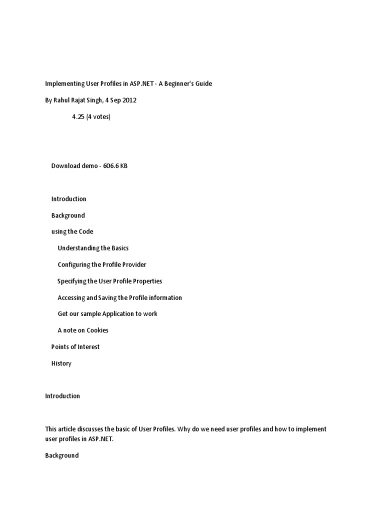 This article discusses the basic of User Profiles. Why do we need user profiles and how to implement