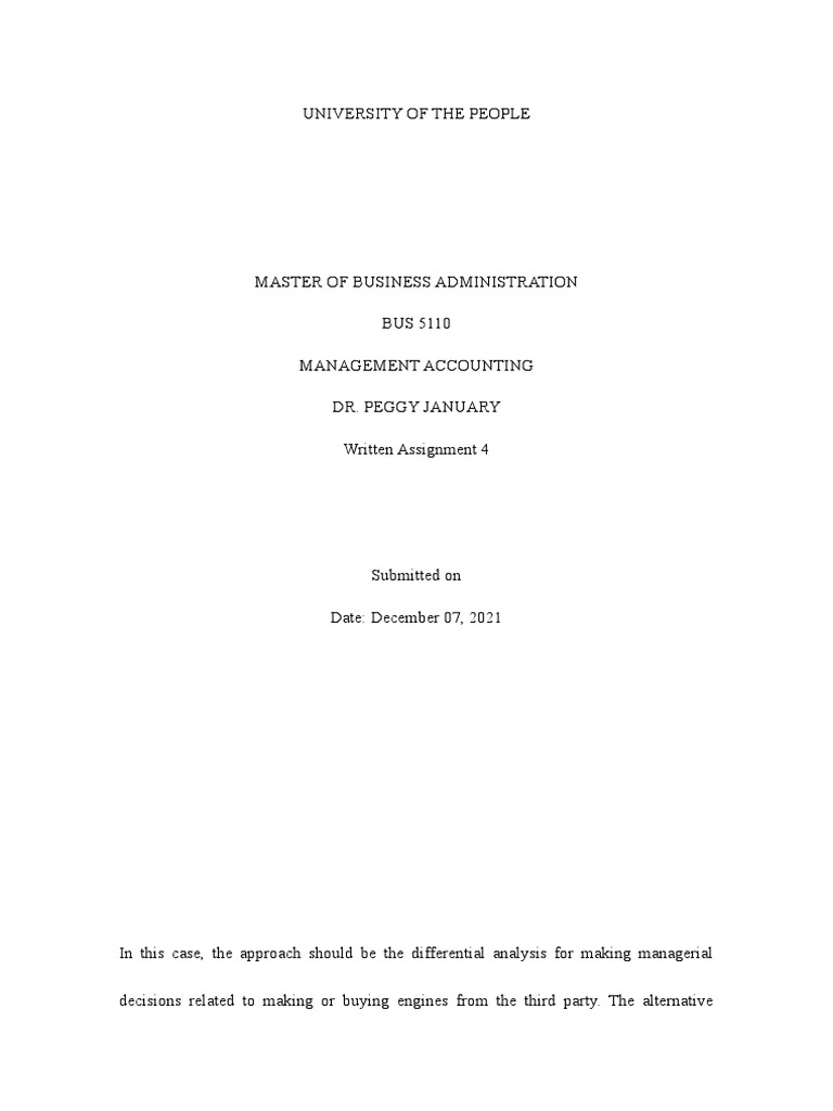 manufactured in-house. As you can see from the table above, Alternative 1 (in-house