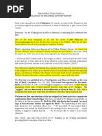 inconsistencies while comparing to the other documents that Rizal wrote