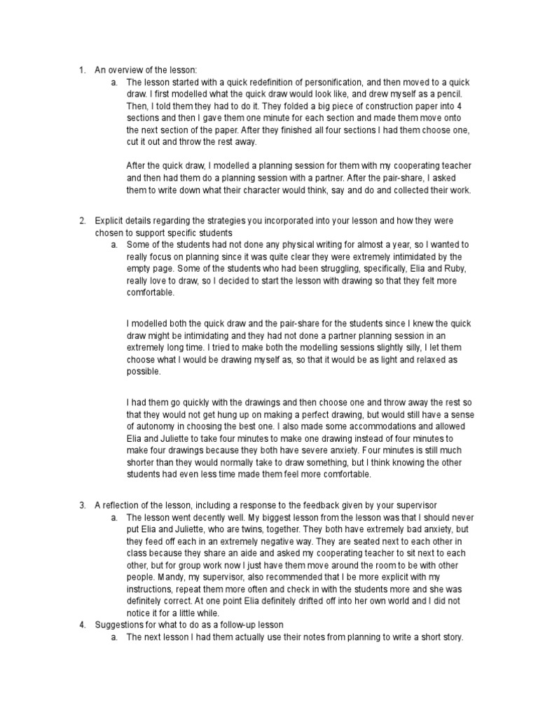 3. A reflection of the lesson, including a response to the feedback given by your supervisor