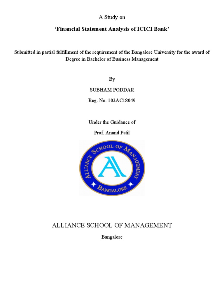 ANALYSIS OF ICICI BANK ”. It is the original work done by me as per the requirement of the