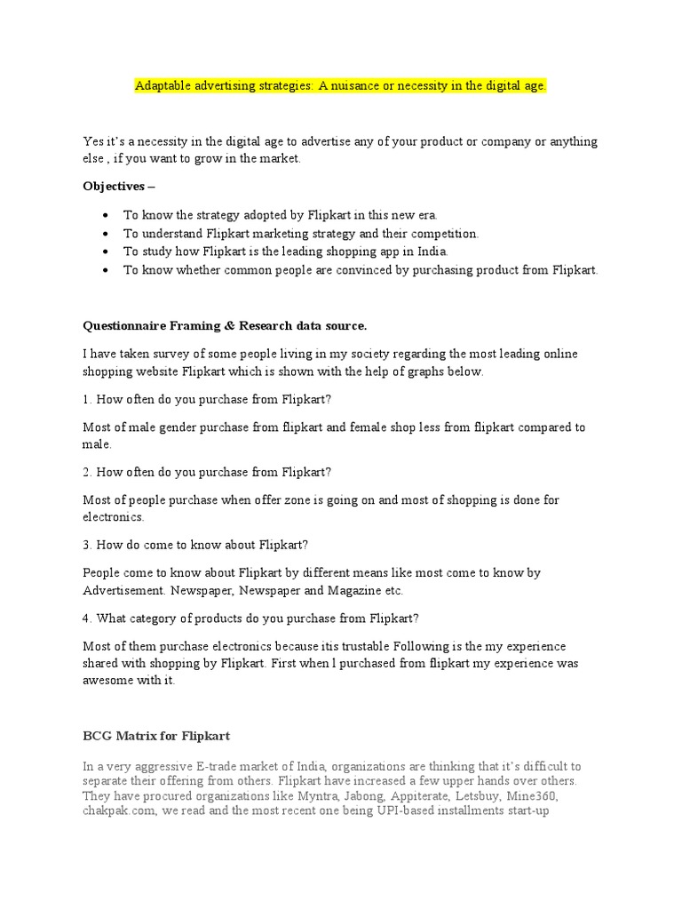 classifications to include decision for clients. (Khan, 2014) Flipkart is presently wagering