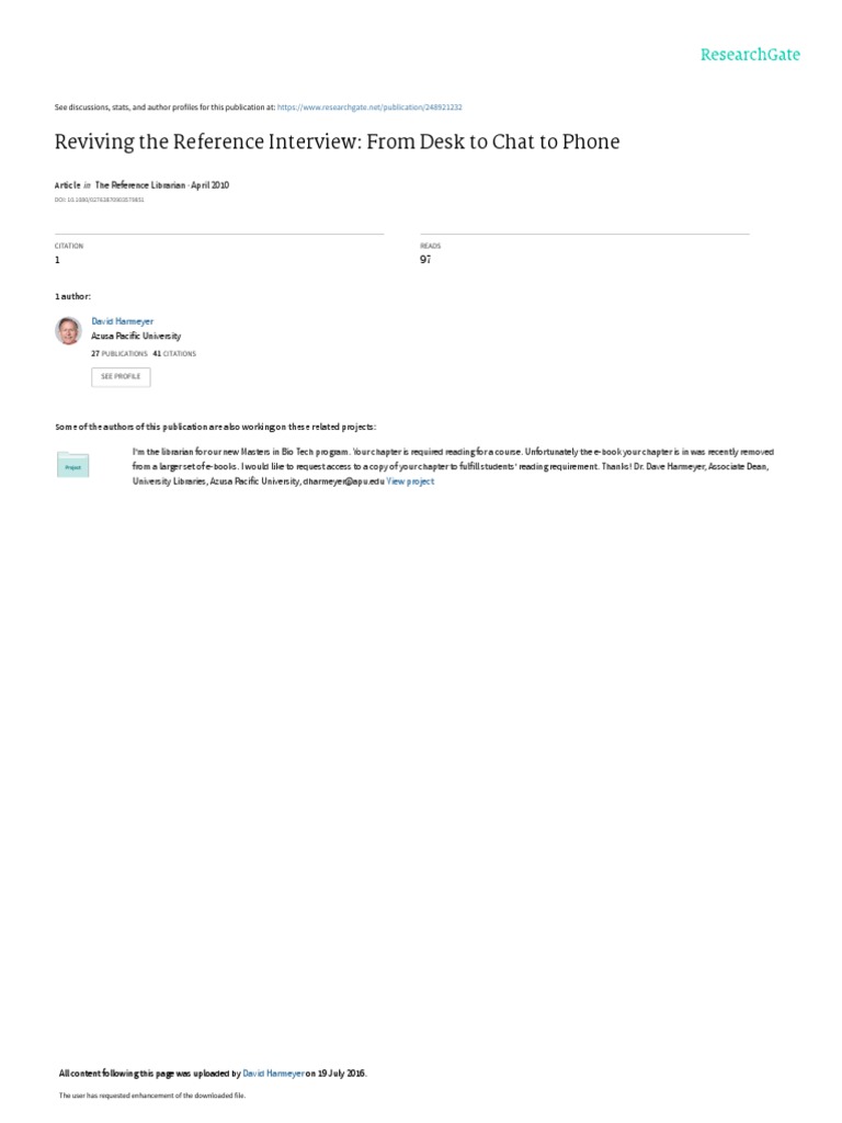 the old familiar reference interview has moved. It’s moved online. The desk is richly