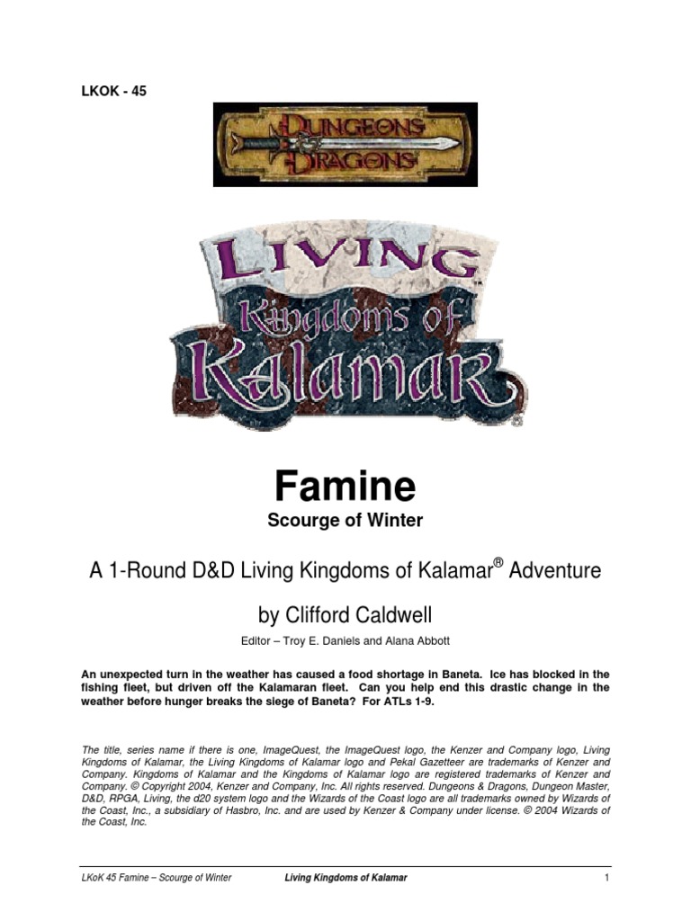 LKoK 45 Famine – Scourge of Winter Living Kingdoms of Kalamar 2