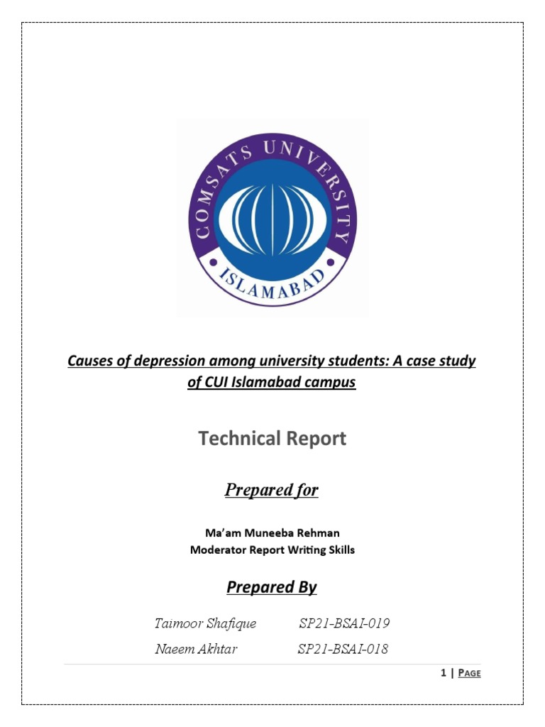 The purpose of the report is to establish the prevalence of depression among COMSATS