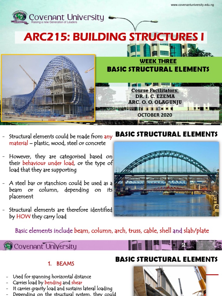 - Structural elements could be made from any BASIC STRUCTURAL ELEMENTS
