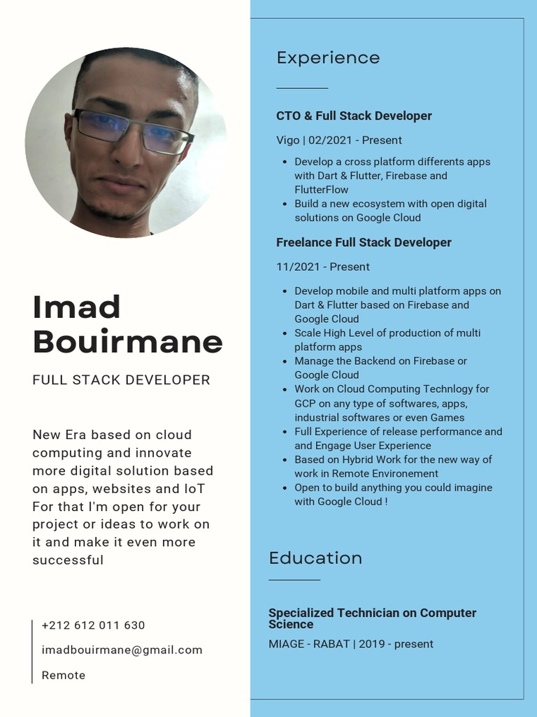 I am Imad Bouirmane, a young man graduated with a DTS in Computer Development,