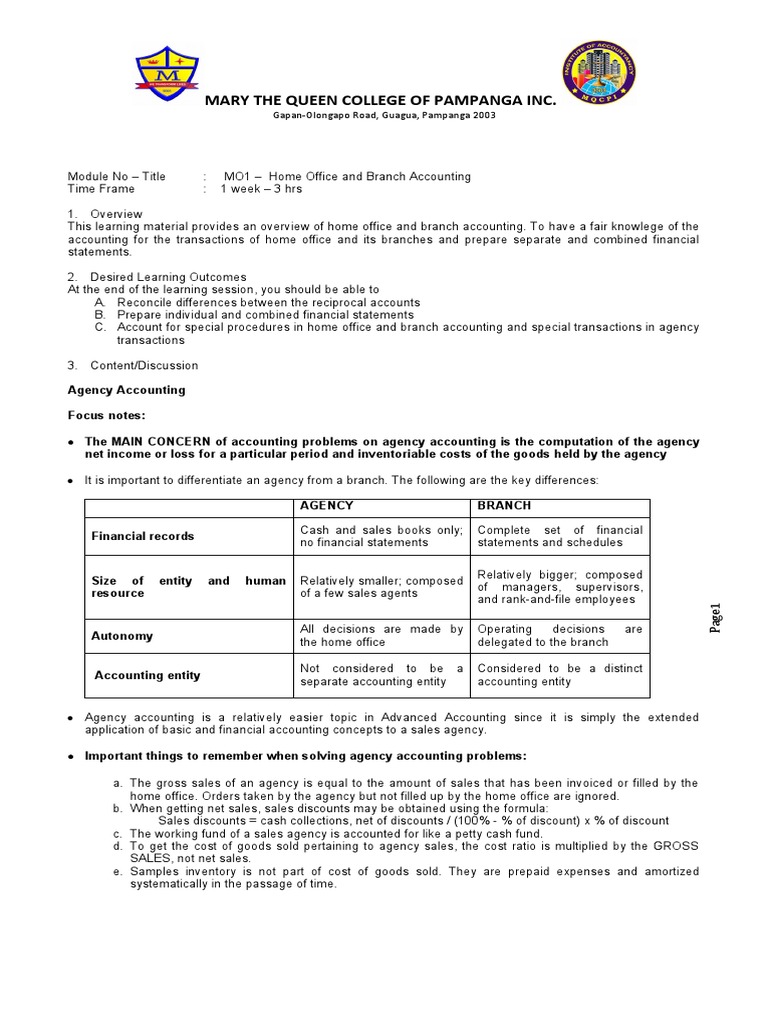 This learning material provides an overview of home office and branch accounting. To have a fair knowlege of the