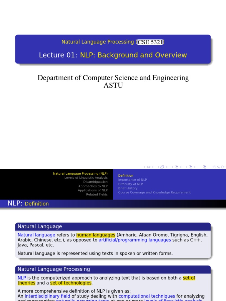 Science, Addis Ababa University Lecture 01: NLP: Background and Overview 6/30