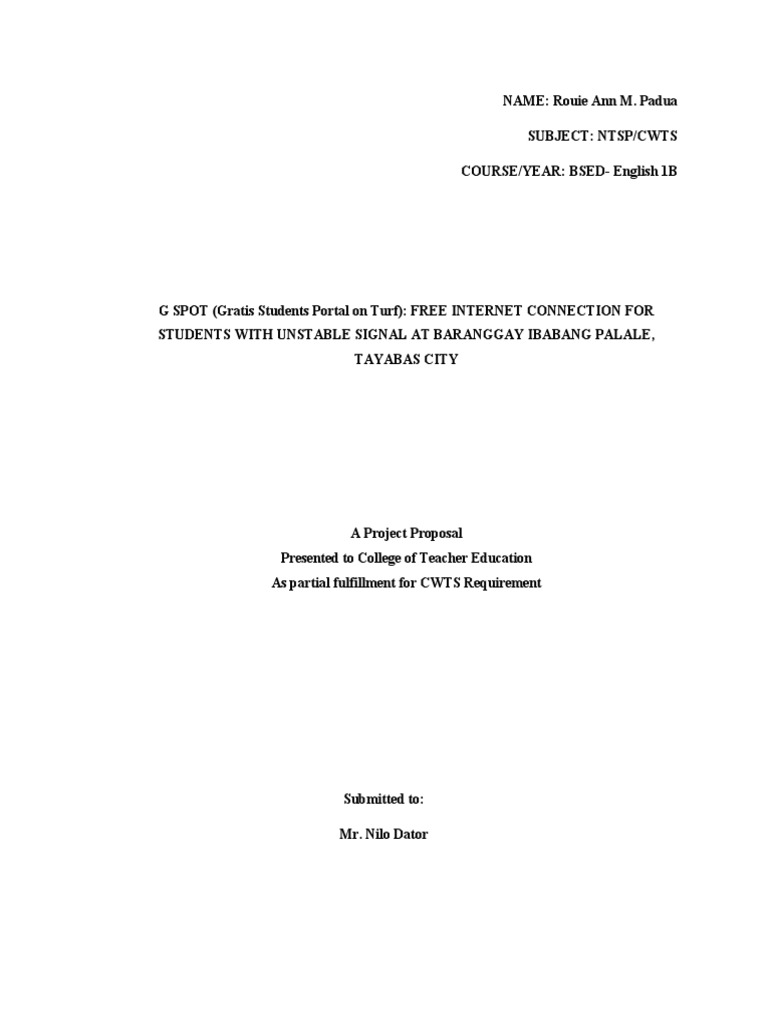 G SPOT (Gratis Students Portal on Turf): FREE INTERNET CONNECTION FOR
