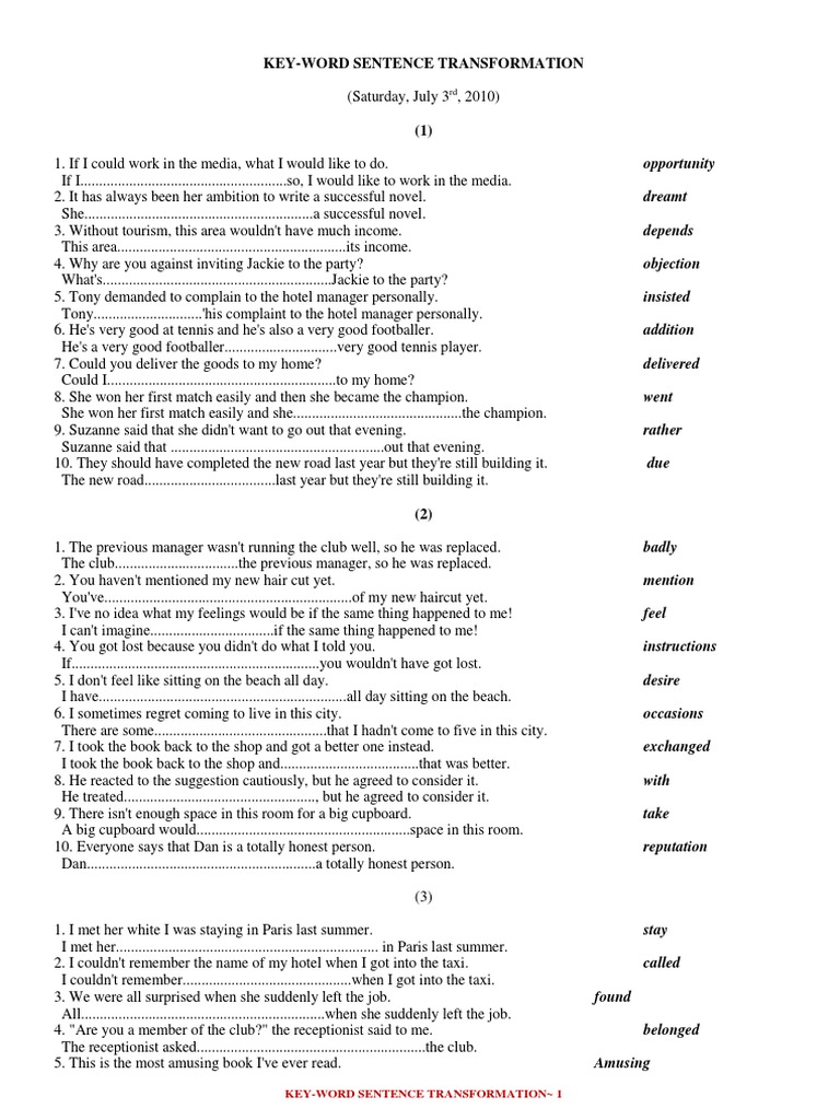 KEY-WORD SENTENCE TRANSFORMATION~ 1