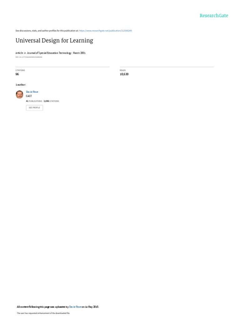 Rose, D., & Meyer, A. (2002). Teaching every Rose, D.H., Meyer, A., & Hitchcock, C. (Eds.).