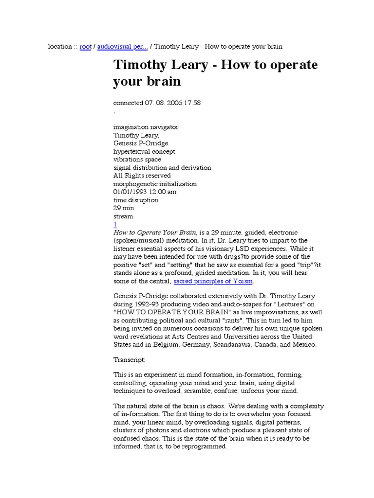 (spoken/musical) meditation. In it, Dr. Leary tries to impart to the
