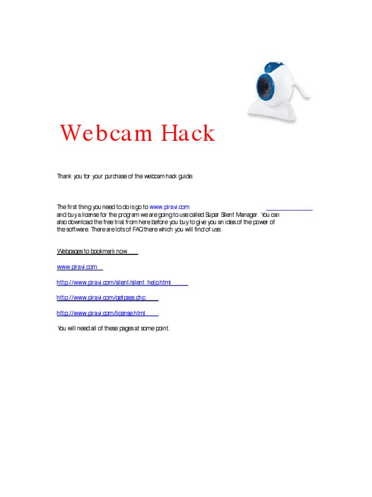 Thank you for your purchase of the webcam hack guide.