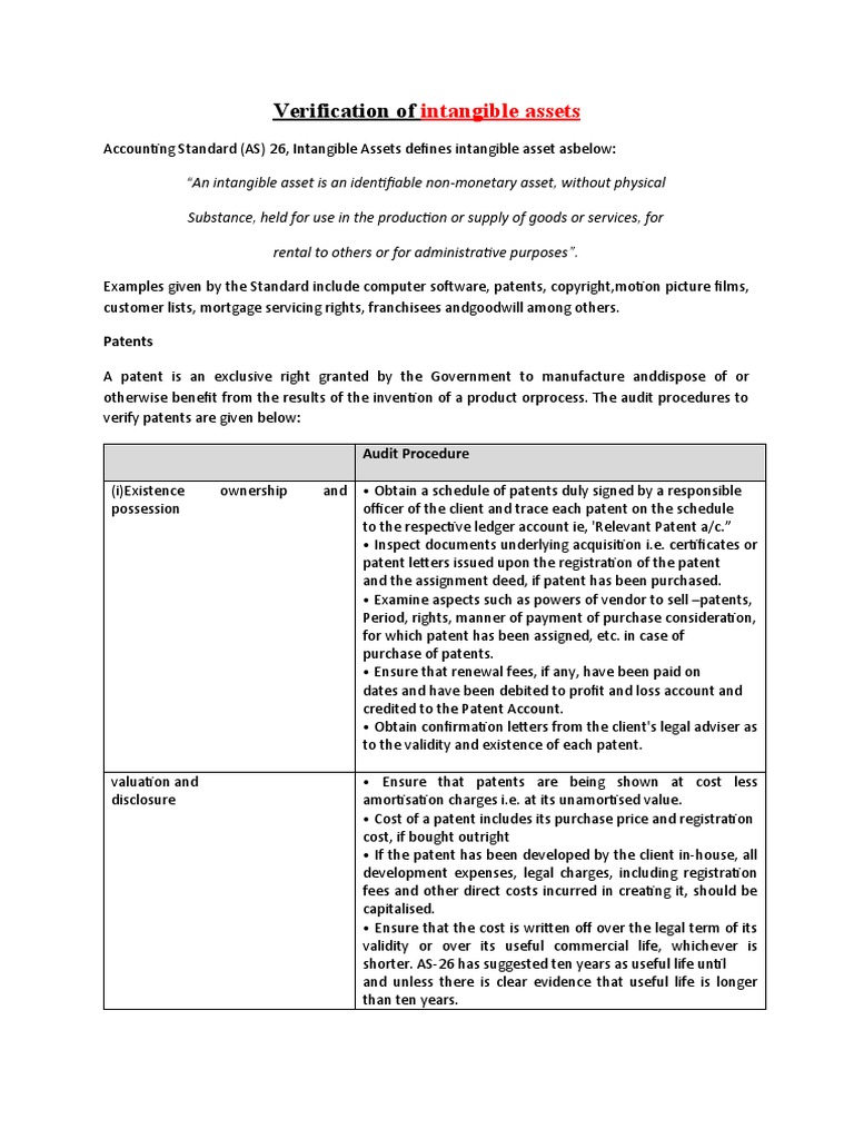 Verification of intangible assets