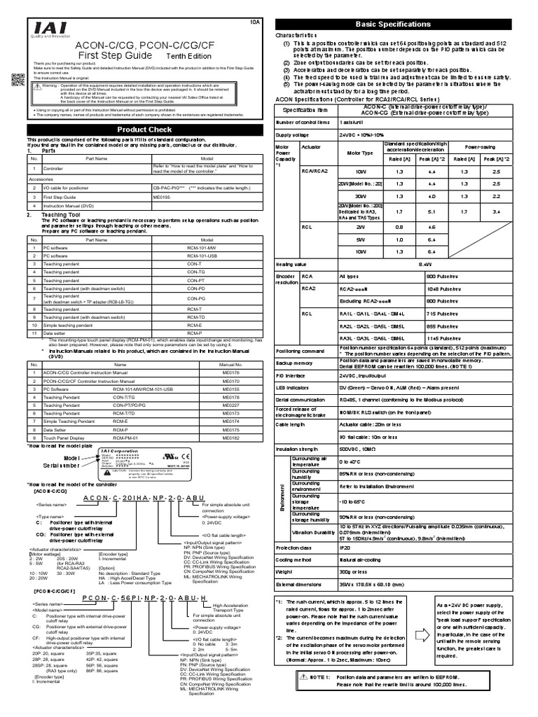 the back cover of the Instruction Manual or on the First Step Guide. ACON Specifications (Controller for RCA2/RCA/RCL Series)
