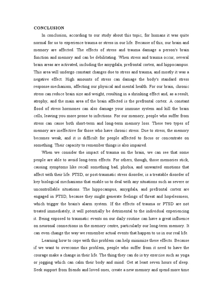 memory are affected. The effects of stress and trauma damage a person's brain