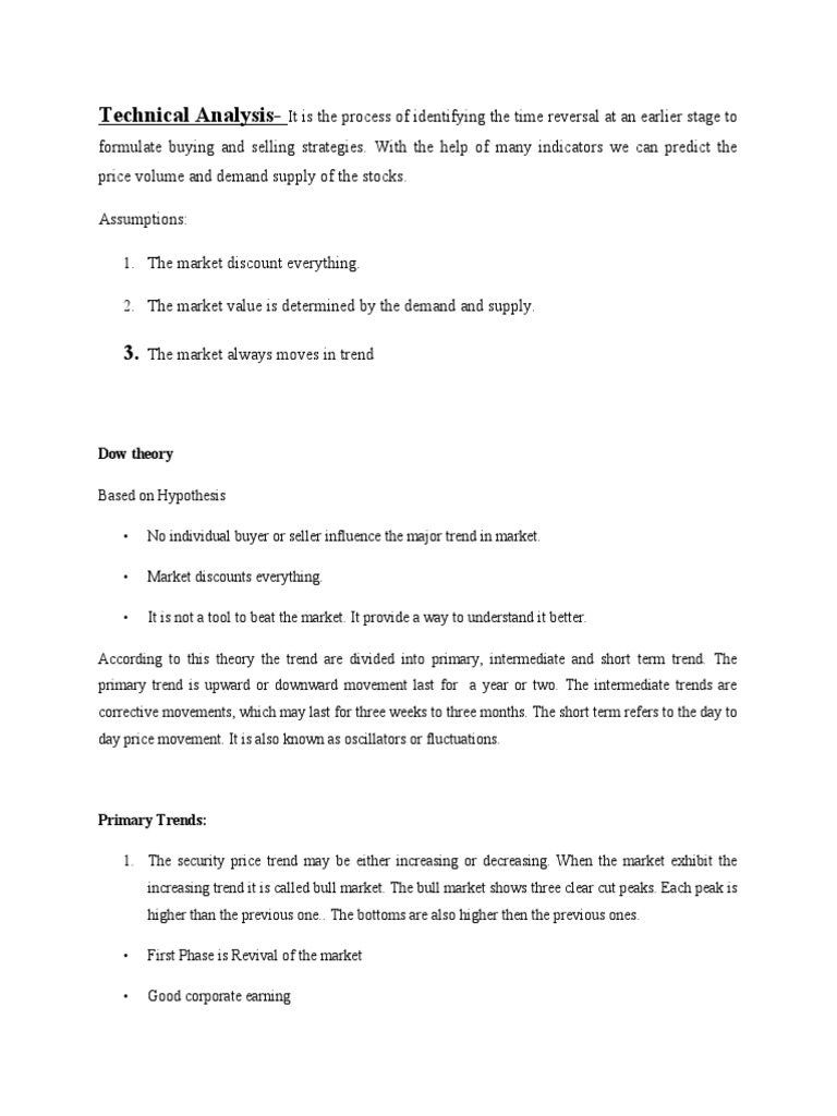 Technical Analysis- It is the process of identifying the time reversal at an earlier stage to