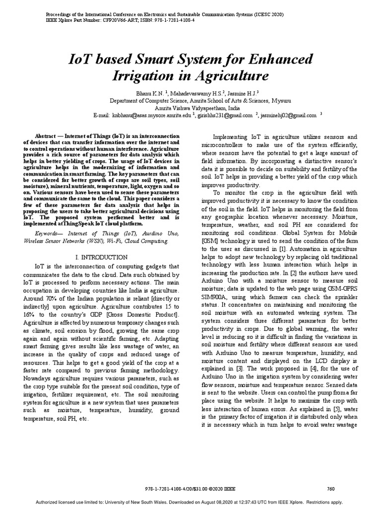 [6] More, Abhishek, et al. "Soil Analysis Using Iot." Available at