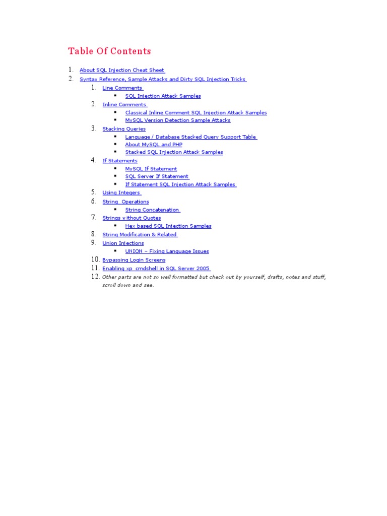 1. About SQL Injection Cheat Sheet