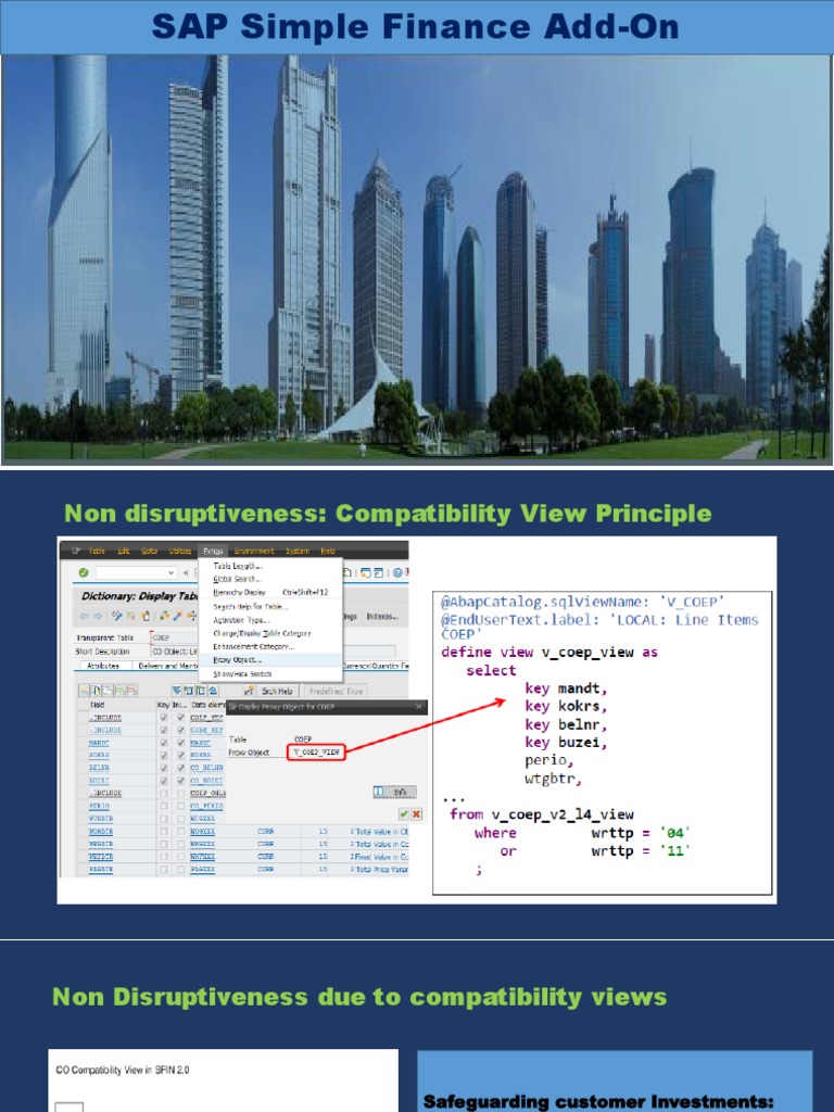 • Compatibility views V_(TABLENAME) ( e.g. V_COEP) are