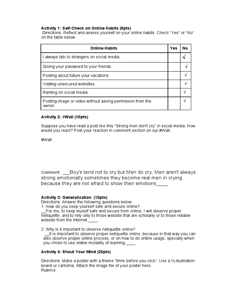 Activity 1: Self-Check on Online Habits (5pts)
