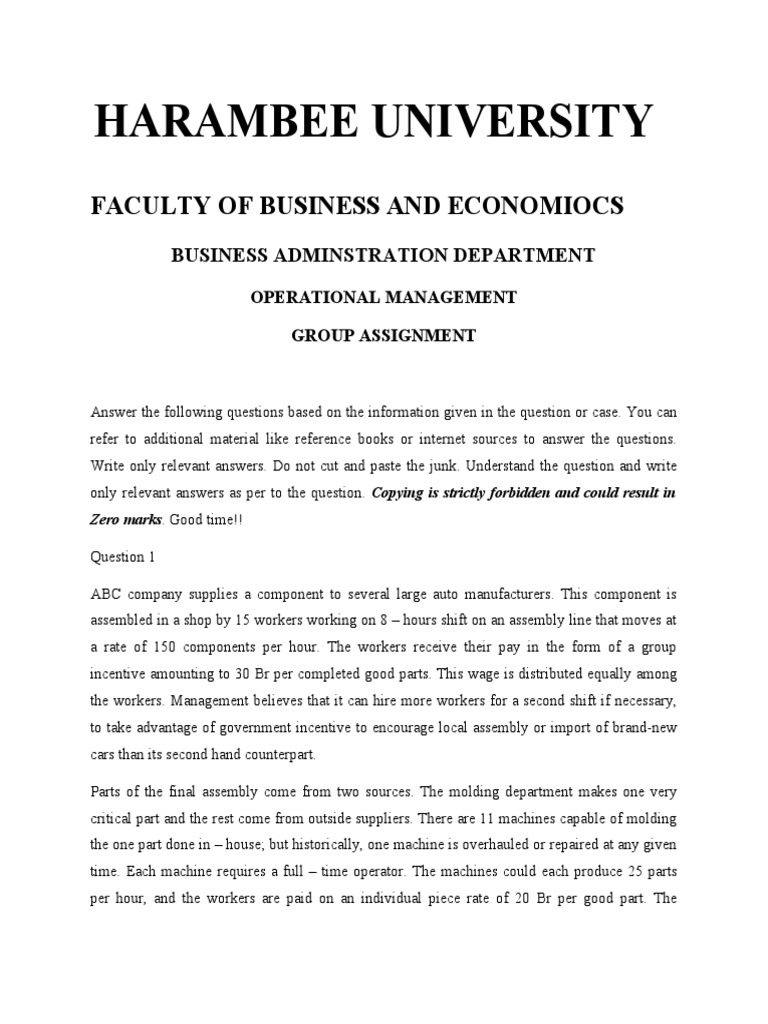 per hour, and the workers are paid on an individual piece rate of 20 Br per good part. The