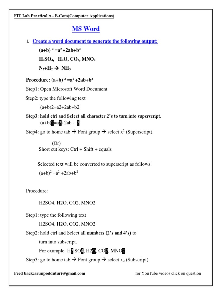 FIT Lab Practical’s – B.Com(Computer Applications)