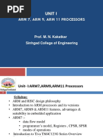 The document provides information about the ARM instruction set covered in Unit 2, including: 1) It describes the ARM and Thumb instruction sets and how they are selected. 2) It lists the data types supported by the ARM instruction set. 3) It explains condition codes and conditional instructions in ARM. 4) It provides details about various data processing instructions like move, arithmetic, logical, comparison and multiply instructions along with the barrel shifter functionality.