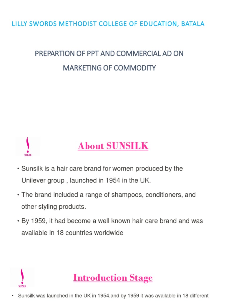 • Sunsilk was launched in the UK in 1954,and by 1959 it was available in 18 different