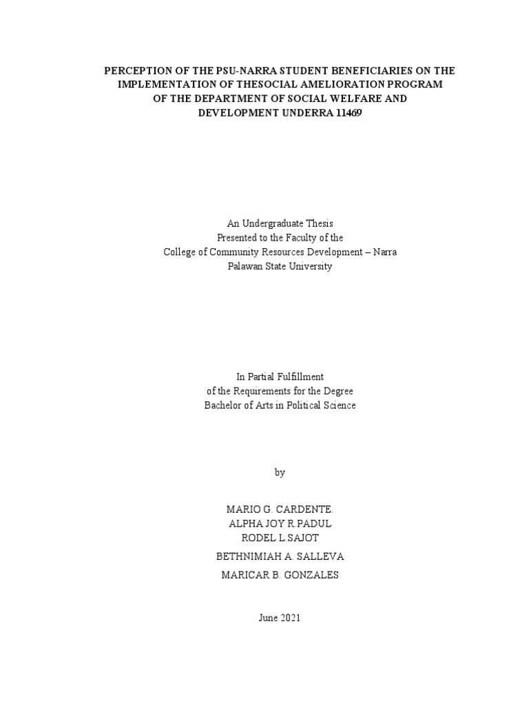 PSU-NARRA STUDENT BENEFICIARIES ON THE IMPLEMENTATION OF THE