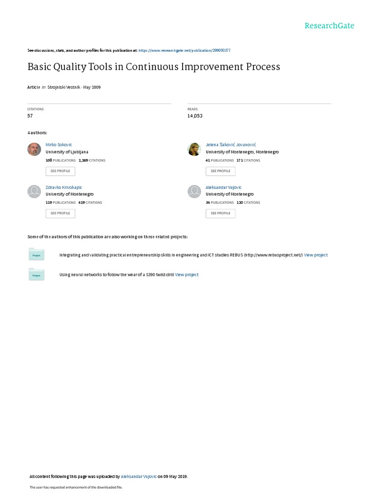 Basic Quality Tools in Continuous Improvement Process: Strojniski Vestnik May 2009